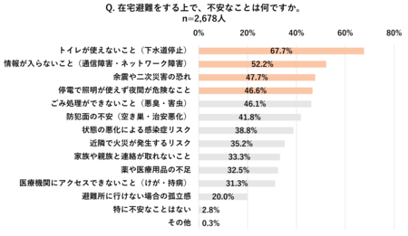 在宅避難で「不安なこと」は「トイレ」「インフラ」「耐震」