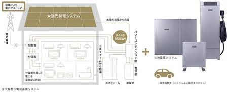 停電時の不安を解消するのが、「太陽光発電」「エネファーム(燃料電池)」「蓄電池」を連携させたシステムです。これらを組み合わせることで、雨天でも約10日分、さらに電気自動車(V2H)と連携すれば最大約11日間の電力と暖房・給湯を確保可能です。停電時でも普段通りテレビで情報を得たり、家電を使ったりすることができ、災害後の生活の質を維持します。
