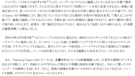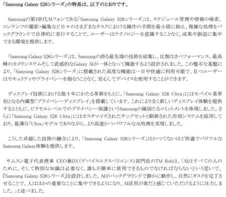 ・「Samsung Galaxy S26」、「Samsung Galaxy S26+」、「Samsung Galaxy S26 Ultra」