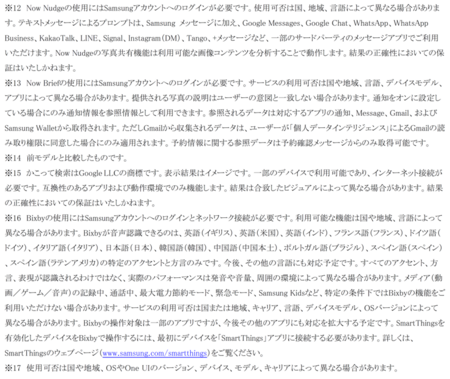 ※一部のGalaxy AIの機能の使用には、Samsungアカウントへのログインが必要な場合があります。Samsungは、AI機能によって生成される出力の正確性、完全性、信頼性についての保証は致しかねます。Galaxy AIの機能の使用可否や種類は、国や地域、OSやOne UIのバージョン、デバイス、モデル、キャリアによって異なる場合があります。