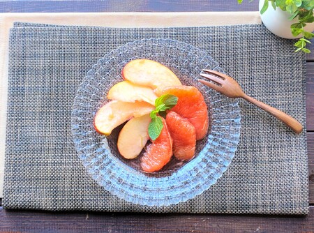 ▼漬けた液は、水や炭酸で割ってドリンクに。 漬けたフルーツは、そのままさっぱりコンポート風に。ヨーグルトなどのトッピングにも