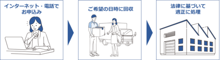 ・ 回収後は、家電リサイクル法/小型家電リサイクル法のそれぞれの法律で定められている処理方法に則っ