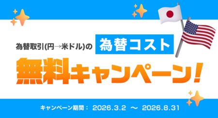2026年3月2日(月)~2026年8月31日(月)の期間中に、外国株の取引に係る為替取引(円→米ドル)を行った際の為替コストが無料となります。