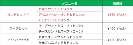 ※ 2 「サンドセット」のみレギュラーサンドイッチでのご提供 ※赤字表記は新ラインナップです。