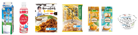 全農とメーカー・販売先等が協力し、商品を通じて産地を応援する「ニッポンエールプロジェクト協議会」 第7弾(北海道酪農応援)の取組みにより開発された中から、脱脂粉乳を原料とした飲料やお菓子、ピラフ、ジェラートなどを数量限定で販売します。さらに「牛乳でスマイルプロジェクト」メンバーの、株式会社Blueprint one(本社:東京都港区、代表取締役:鈴木大樹)との連携で、脱脂粉乳由来の繊維でできたTシャツ等も展示・販売します。