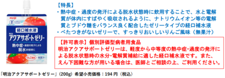 特別用途食品(個別評価型病者用食品)表示許可取得「明治アクアサポート」「明治アクアサポートゼリー」