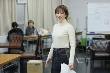 そんなクリエイティブな現場で、多様なバックグラウンドを持つキャスト陣の中心となっていたのはやはり主人公・浩太を演じる水田航生と小野塚勇人。物語の構造と登場人物の役割を俯瞰しながら「ここで相槌を打つ人を変えたほうがコメディの様式になるのでは」「今の言い回しだと、ニュアンスが捉えづらくなる」と積極的に意見を出していました。淳一役の陳内 将は抜群の安定感で“綱引き”をさりげなく土台から支えていて、鈴木康介はあえて受けに回ることで、淳一として浩太と渉に振り回されるのを楽しんでいるよう。渉役の瀧澤 翼は大胆なアプローチで場をかき乱し、鈴木曉はまさしく体当たりでトリッキーな人物像を体現。元シャンソン歌手・亜紀を演じる珠城りょうと久城あすは、さすがのカリスマ性とチャーミングさで華やかな彩りを添え、物語を一気に進めるだけの説得力があります。