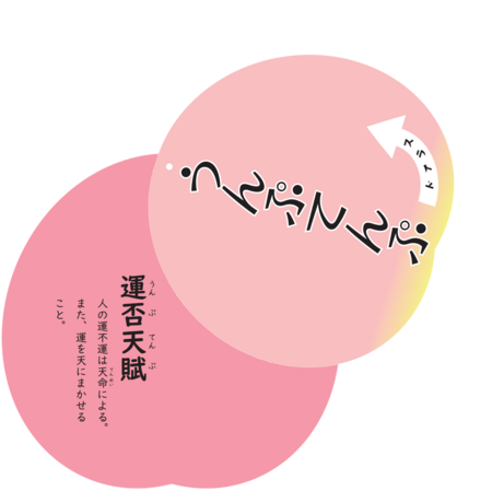 ・フルーツ型パネルをスライドすると漢字と意味が現れる「音がおもしろい四字熟語」