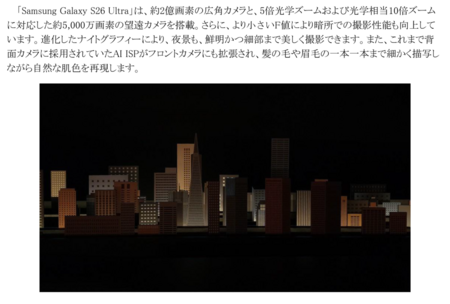 「Samsung Galaxy S26シリーズ」は、スマートフォン撮影の可能性をさらに広げます。高度なAI技術により、専門的な知識がなくても高品質な写真や動画を簡単に撮影・編集できます。