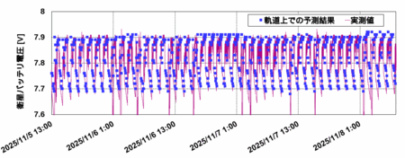 図2:エッジコンピューティング処理による軌道上でのバッテリ電圧予測結果の例