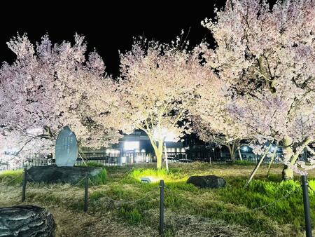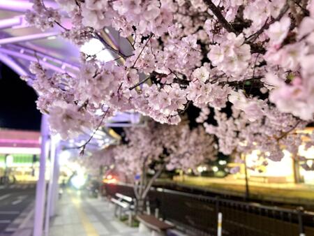 平成25年度からは、桜の開花時期に合わせてLEDによるライトアップを実施しており、駅前広場をやさしい光で照らす夜桜が春の風景を彩ります。
