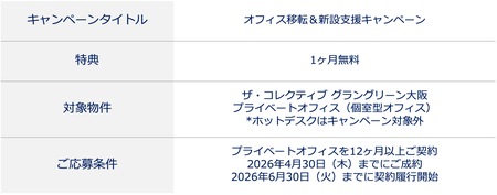シンガポール発のプレミアムコワーキングブランド JustCo(ジャストコ) が運営する、エグゼクティブ向けシェアオフィス 「ザ・コレクティブ グラングリーン大阪」 は、1ヶ月無料の「オフィス移転&新設支援キャンペーン」を、ご好評につき4月30日(木) まで延長します。