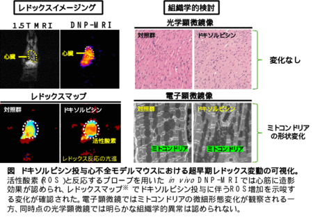 東海国立大学機構 岐阜大学大学院医学系研究科 放射線医学分野の松尾政之教授、Abdelazim Elhelaly講師、同大医学研究科腫瘍病理学分野の原明教授、富田弘之准教授(COMIT、創発研究者)、市橋昂樹大学院生、同大医学研究科薬理病態学分野の兵藤文紀教授(COMIT、創発研究者)らの研究グループは、量子超核偏極MRI(in vivo DNP-MRI※1)を用い、ドキソルビシン※2投与心不全モデルマウスにおいて、心不全の原因の一つとされる活性酸素(ROS)※3に伴うレドックス状態の変化を、心機能低下や組織変化が現れる前の“超早期”の検出に成功しました。本成果は、心不全の早期発見や早期治療介入の支援に加え、ROSやミトコンドリアを標的とする新規治療法の開発への応用が期待されます。