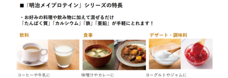 近年、いつもの食事でたんぱく質をはじめとした栄養を意識的に補給したいというニーズが高まる中、特に調理の手間をかけず、食事に取り入れやすい商品への関心が広がっています。「明治メイプロテイン」は、コーヒーや牛乳、味噌汁、ヨーグルトなど、さまざまな食事や飲み物に混ぜやすい粉末タイプで、食生活に無理なく取り入れられる点が特長です。