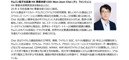 サムスン電子社長 兼 MX事業本部COO Won-Joon Choi(チェ ウォンジュン)
