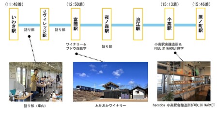 ふくしまデスティネーションキャンペーンに合わせ、「復興 浜通り酒巡り号」を運行します。「酒」「食」「発酵」をテーマに、復興へ向けて歩みを進める浜通りの多彩な酒と食を堪能できるイベント列車です。生産者による語り部や、ワイナリー・醸造所の見学など、浜通りの魅力に触れる体験もご用意しています。