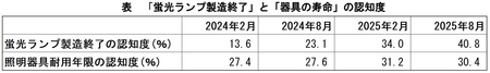 表 「蛍光ランプ製造終了」と「器具の寿命」の認知度