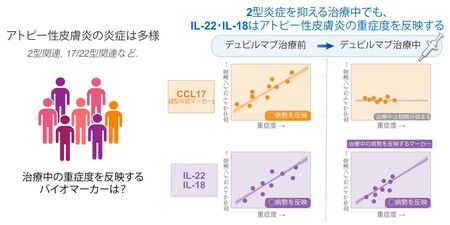 慶應義塾大学医学部皮膚科学教室の野村彩乃助教、川崎洋専任講師、天谷雅行教授と理化学研究所生命医科学研究センターの古関明彦チームディレクター(免疫器官形成研究チーム)、シスメックス株式会社の長谷川武宏らの共同研究グループは、デュピルマブ治療中のアトピー性皮膚炎患者において、血中IL-22およびIL-18が治療期間を通じて疾患活動性を反映する可能性を明らかにしました。