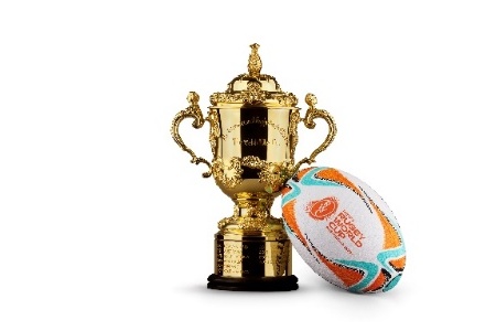 このトロフィーはラグビーワールドカップ第一回大会(1987年)から使用され、優勝国に授与されるウェブ・エリス・カップ(Webb Ellis Cup)です。