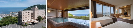 ツインルームのトリプル対応や最大5名で宿泊できる客室など一部客室をリニューアルし、ファミリーやグループ旅行など多様な滞在スタイルにお応えいたします。また、約77㎡の露天風呂付客室を新設。窓の外には開放的な相模灘の景色が広がり、どこまでも広がる海と空の景観を眺めながら、プライベートな空間で温泉を楽しめる開放的な客室となっています。