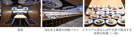 このメモリアルな店舗を“万博レガシー”として未来につないでいくために、「くら寿司 メモリアル店 なんば千日前」を2026年5月中旬にオープンします。同店舗は、大阪・関西万博店を象徴する回転ベルトやフォトスポットとして人気を博した抗菌寿司カバーのオブジェのほか、ジャパニーズモダンなデザインの木目調のフラットテーブルや畳風の座席など内装の一部を移設するなど、大阪・関西万博店を再現。また、大阪・関西万博店の象徴ともいえる、70か国の世界の料理を再現した特別メニューも、常時お楽しみいただけるよう復刻販売する予定です。