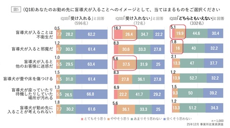 今回の事業所で働く従業員への調査とは別に、協会では、2025年8月に一般市民1,200人を対象にアンケート調査を実施し、盲導犬と一緒に施設を利用することへのイメージ把握を行いました。