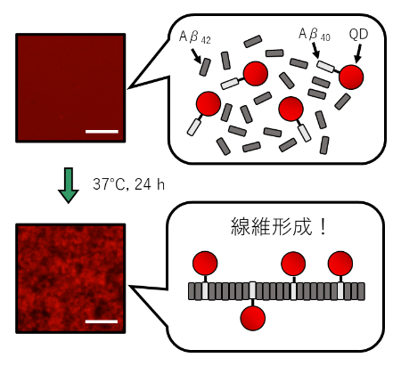 QDによるAβ凝集過程の可視化法のイメージ