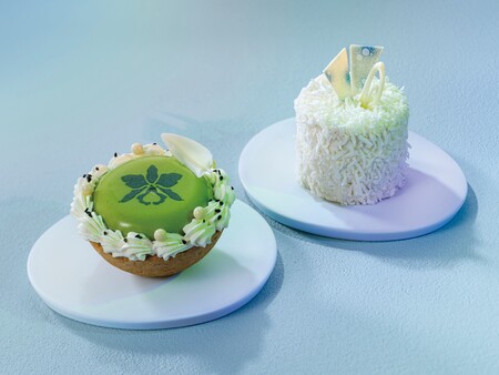 ハレクラニのロゴマークをチョコレートで吹き付けた口どけなめらかな抹茶ムースの中に、甘酸っぱいリリコイ(パッションフルーツ)のシロップを染み込ませたスポンジを忍ばせました。ベースとなるタルトの中にはザクザクとした食感の黒胡麻のクルスティアンを敷き詰め、食感と香りの鮮やかなコントラストをお楽しみいただける一品です。