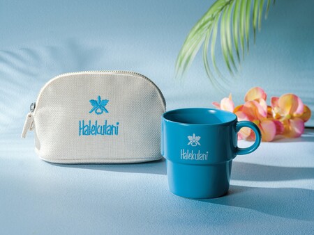 表面にハレクラニロゴマーク、裏面に帝国ホテルロゴマークをあしらった、鮮やかなハレクラニブルーのスタッキング可能なマグカップです。