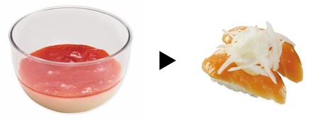 豆乳ぷりん(いちごソース) ▶ オニオンサーモン