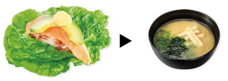 シャリ野菜 サーモン ▶ あおさ入り味噌汁