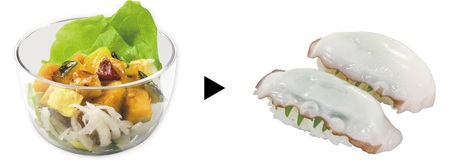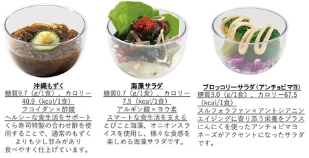 今回ご提供する商品ラインナップは、野菜や海藻、鶏肉などをメインに使用した全12品で、β-カロテンや食物繊維を含む「かぼちゃとさつまいものマリネ」、クエン酸を含むゆずを使用した「ゆず白菜」、海藻に含まれるフコイダンを手軽に摂取できる「沖縄もずく」、発酵由来の酢酸を含む「食前酢 りんご」、大豆イソフラボンを含む「豆乳ぷりん(いちごソース)」など、日常の食事で不足しがちな栄養素を補えるメニューをご用意しました。さらに、シャリの代わりに大根やにんじんを使用した「シャリ野菜」もリニューアルして復活。野菜を手軽に取り入れながら寿司を楽しめるメニューとなっています。そして、本シリーズの商品は回転レーンからもご提供します。注文品よりもお得な価格で、気軽に流れてくる商品を選んで取る楽しさも魅力です。