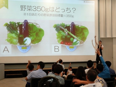 さらに、毎年開催している社員の家族を会社に招くイベント「ファミリーデー」では、プログラムに食育セミナーの時間を設け、社員と家族を対象に外部講師を招いた食育セミナーを実施しています。朝食の大切さや季節の野菜の栄養についてのレクチャー、クイズなどを通じて子供には食の楽しさを、大人には健康への意識を高めてもらうことを目的に、食を通じたコミュニケーションと学びの場を創出しました。従業員とその家族にも健康的な食生活への関心を深め、日々の生活に取り入れるきっかけを提供することを目指しています。