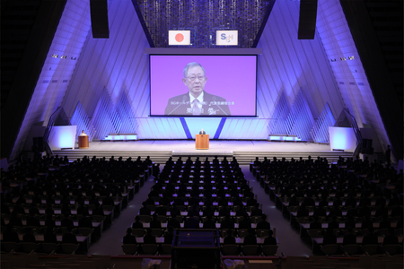 当社代表取締役会長の栗和田榮一からは、「社会環境が大きく変化する中、失敗を恐れず挑戦し続ける若い世代の柔軟な発想と行動力に期待するとともに、当社グループは全力でその挑戦を支えていきます。皆さんが新しい風となり、持続的成長の原動力になることを願っています。」と祝辞が述べられました。また、SGホールディングスの新入社員を代表し、豊郷さんから「どんな困難があろうとここにいる仲間達と協力し、お客さまの想いを届けるという創業以来の誠実な姿勢で挑戦し続けます。」と決意が発表されました。