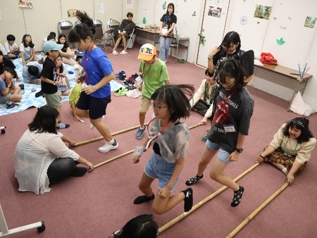 ・キャンプリーダーと子どもたちが協働し、考えを伝え合う場面