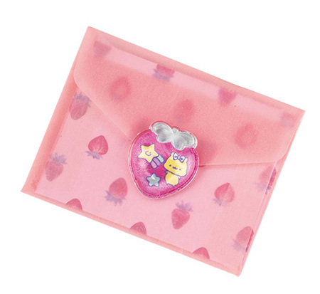 「ハローキティ」やイチゴ、ハートなど4種類のドロップパーツと、専用シールシートで、48個のシールを作ることができます。ブリスターパッケージ風チャーム専用台紙はシールシートのデザインに合わせた4種類が付属します。