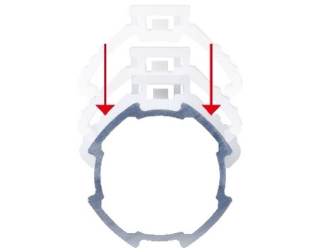 チューブの本数に合わせて連結できるため、複数の被結束物を等間隔で固定することができます。クリップ上部が開いており、チューブの脱着が容易で、Φ4~6mmの被結束物を固定することができます。