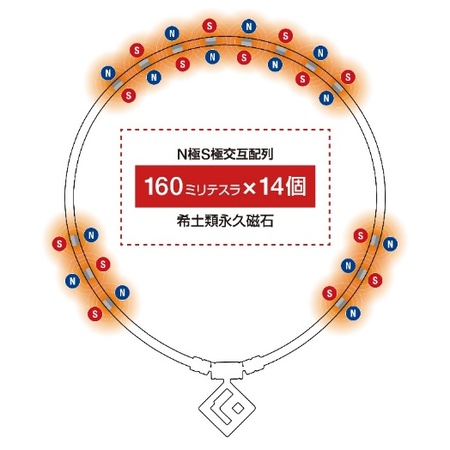 ・コラントッテの磁石は独自のN極S極交互配列により磁気を広範囲に働きかけることができるので、「点ではなく面で」の効果を得ることができます。この効果により磁気が血行改善・筋肉のコリを緩和し、回復を促します。