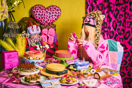 本企画では、平成初期の「コギャル」、平成中期の「盛りギャル」、平成後期の「ナチュラルギャル」と移り変わるスタイルの変遷に着目し、それぞれの時代を象徴するカルチャーやトレンドをスイーツで表現。ファッションやガジェットなど、当時のトレンドを象徴するモチーフはすべてチョコレートを使用したスイーツで構築し、見た瞬間に“あの頃”を想起させるビジュアルに仕上げました。