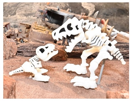 発売25年目の節目を記念し初めて企画された展覧会は、世界三大恐竜博物館の一つで、国内外から恐竜ファンが訪れる福井県立恐竜博物館を会場にしています。会場内には巨大なジオラマがセットされ、その中で、ほねほねザウルスたちが、さまざまなドラマを繰り広げています。発売当初の貴重な「ほねほね」をはじめ、歴代の数百体がずらりと並ぶ「進化の地層エリア」では、見るものを圧倒する壮観な眺めを楽しめます。