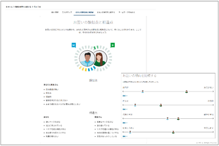自分と相手の違いや共通点を8つの尺度で可視化し、どのように伝えればよいか、どこで認識のズレが起きやすいかを関係ごとに提示します。ユーザーはそのデータをもとに、お互いが大切にしていること やモチベーションの源泉、ストレス要因などを踏まえた、具体的な関わり方のガイドを得ることができます。