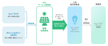 ヒューリック株式会社(以下「HLC」)、ヒューリックエナジーソリューション株式会社(以下「HES」)、株式会社クリーンエナジーコネクト(以下「CEC」)は、オフサイトコーポレートPPAサービスで協業を開始します。