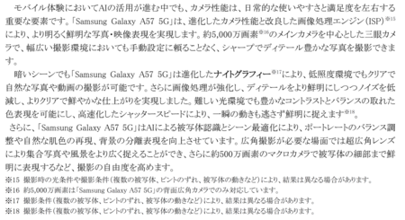 ※5 「Samsung Galaxy A56 5G」との比較によるものです。実際の性能は、使用環境、使用条件、プリインストールされているソフトウェアやアプリケーションなどにより異なる場合があります。