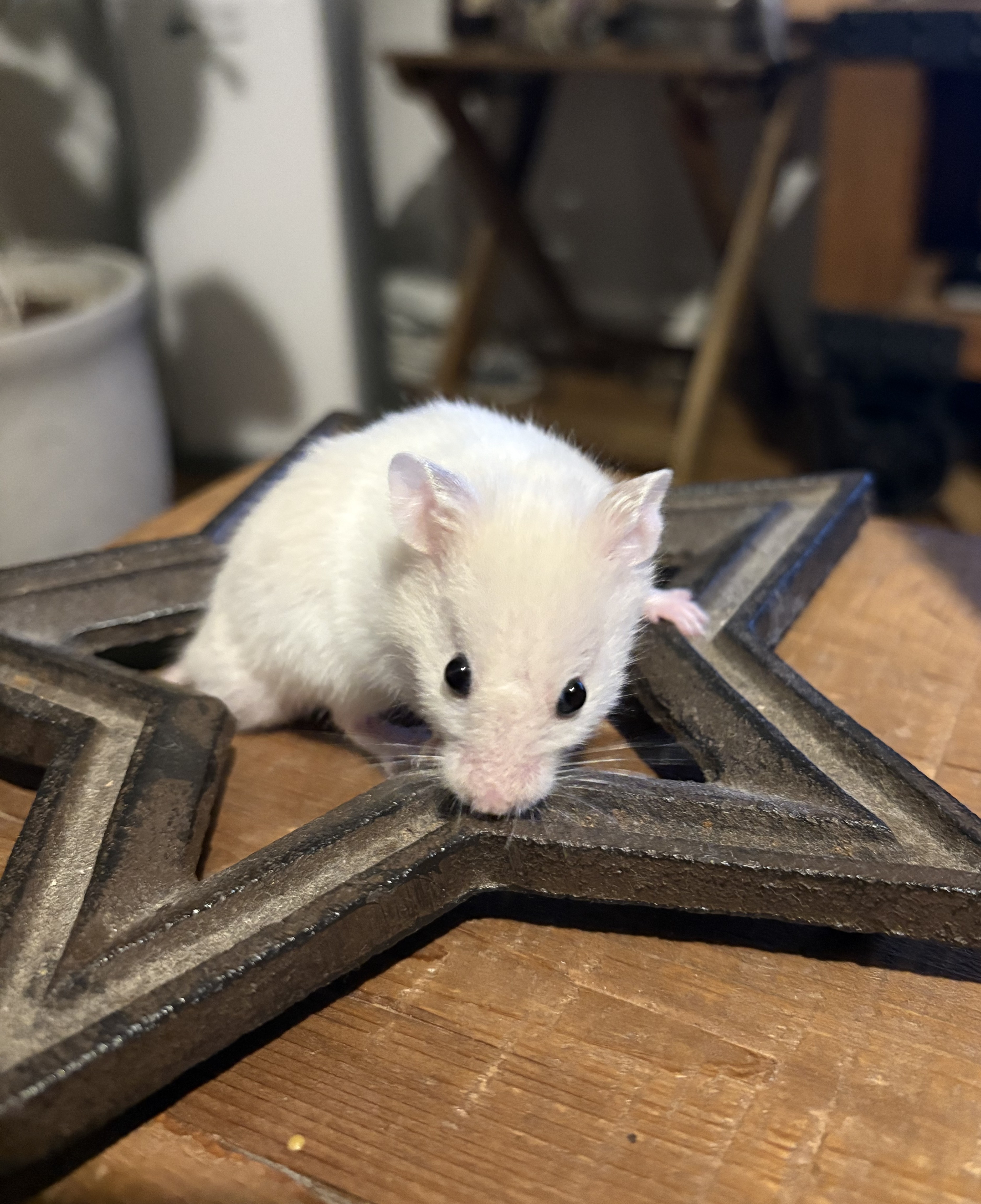 ウチのマロンくんは、8代目のハムちゃんで、7月7日生まれの白い男の子です。