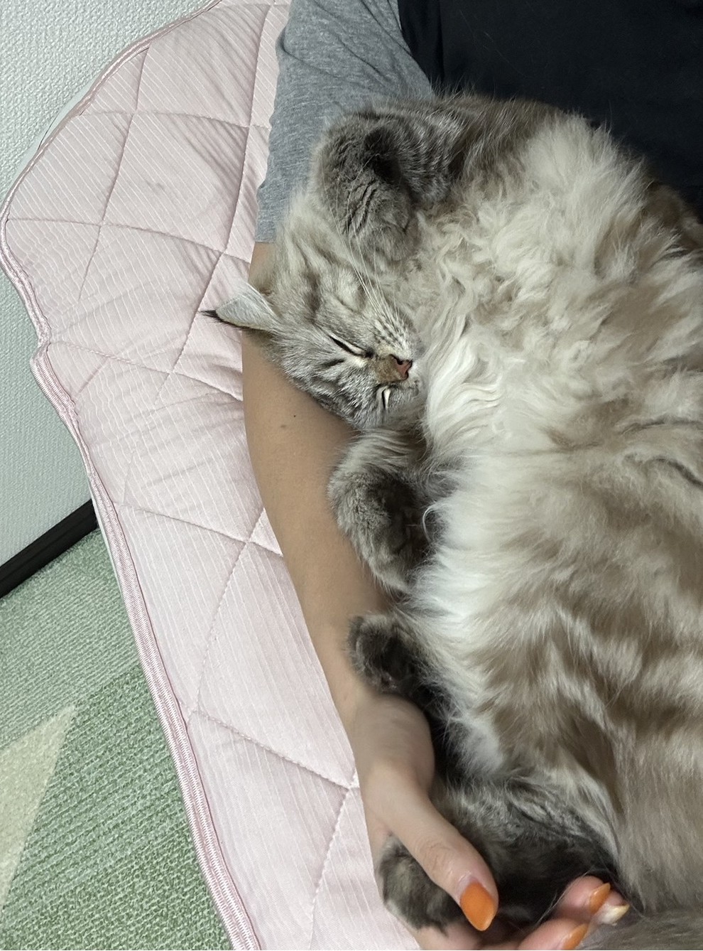 可愛いところは、コハクと妻が寝る時は一緒で、コハクは妻の腕をガッチリ掴んで