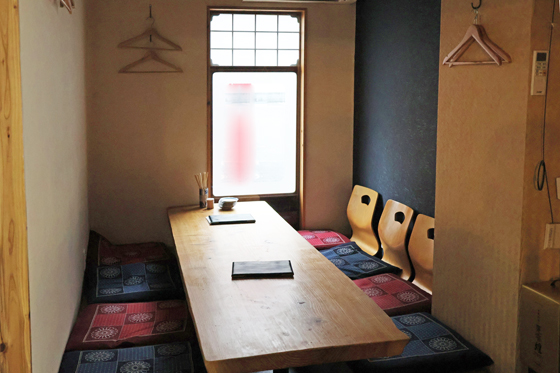 店内は入口付近にカウンター席、そして、ほりごたつ式の席があります。