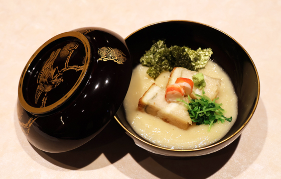里芋のねっとり感と穴子のふわりとした身質のコントラストが良く、葱餡が甘く香り高く、全体を包み込んでくれます。