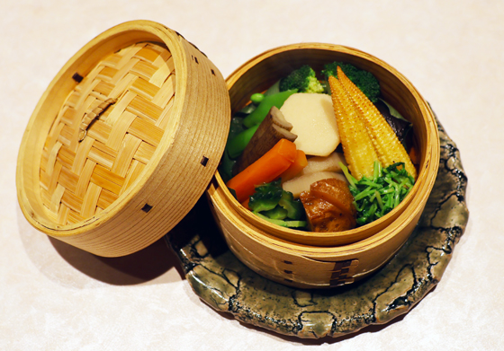 全ての野菜は、炊き方、火入れ、味の濃度を素材に合うようにすべて変え、別々で味付けして、最後に蒸籠で合わせて蒸し上げます。