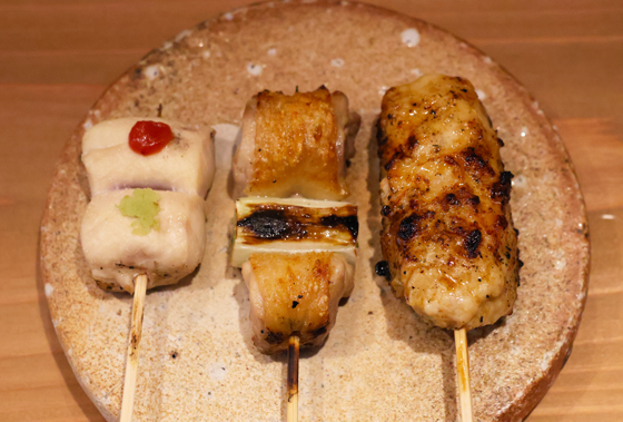 (左からささみ、ねぎま、つくね)