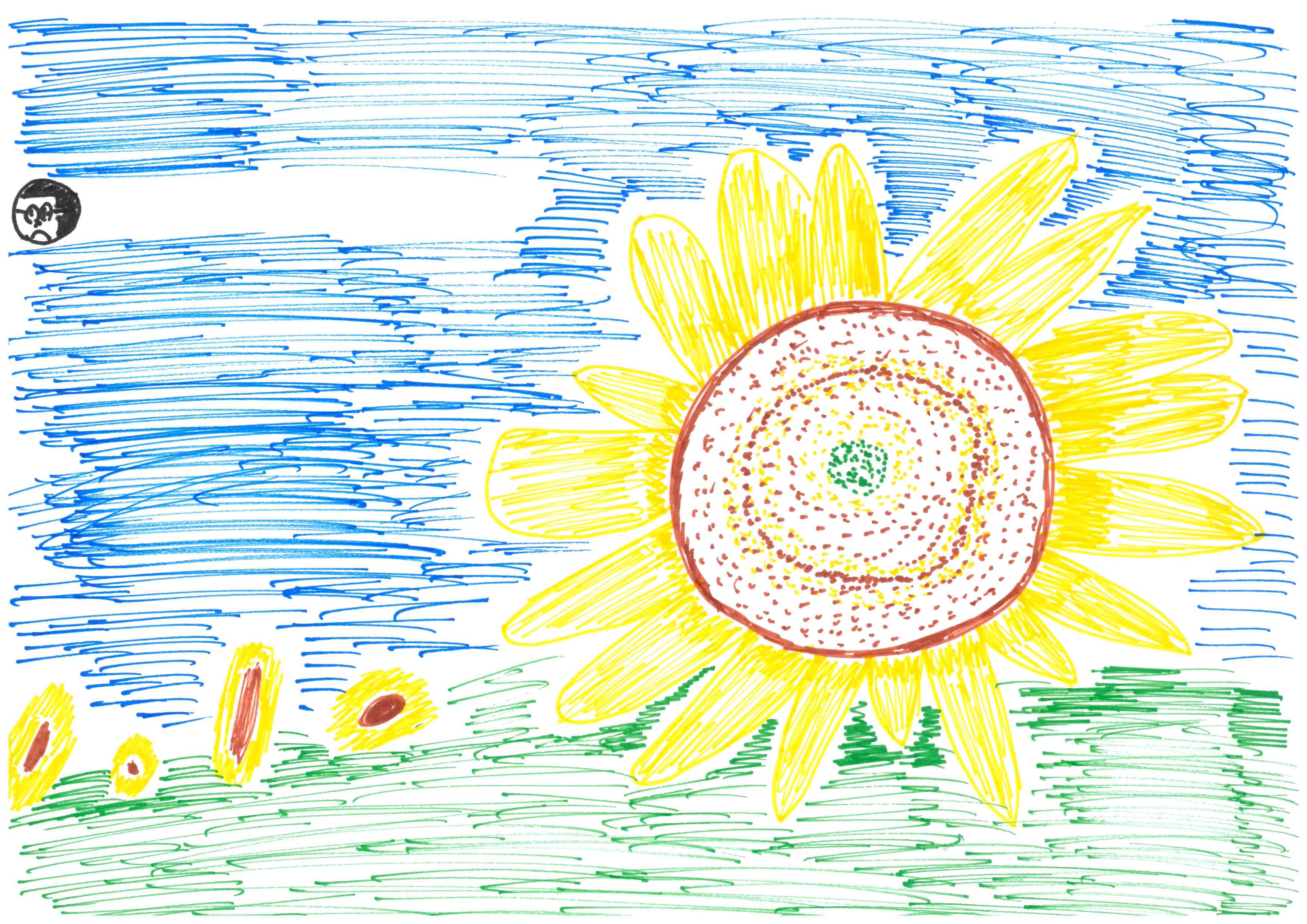 色合いが夏の日差しを感じさせますね。頭の「ひまわり」が印象的ですね。